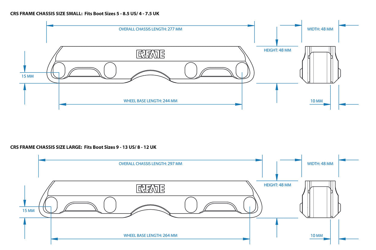 • 244mm Wheel Base: Size Small (US Boot Size 5 - 8.5)
