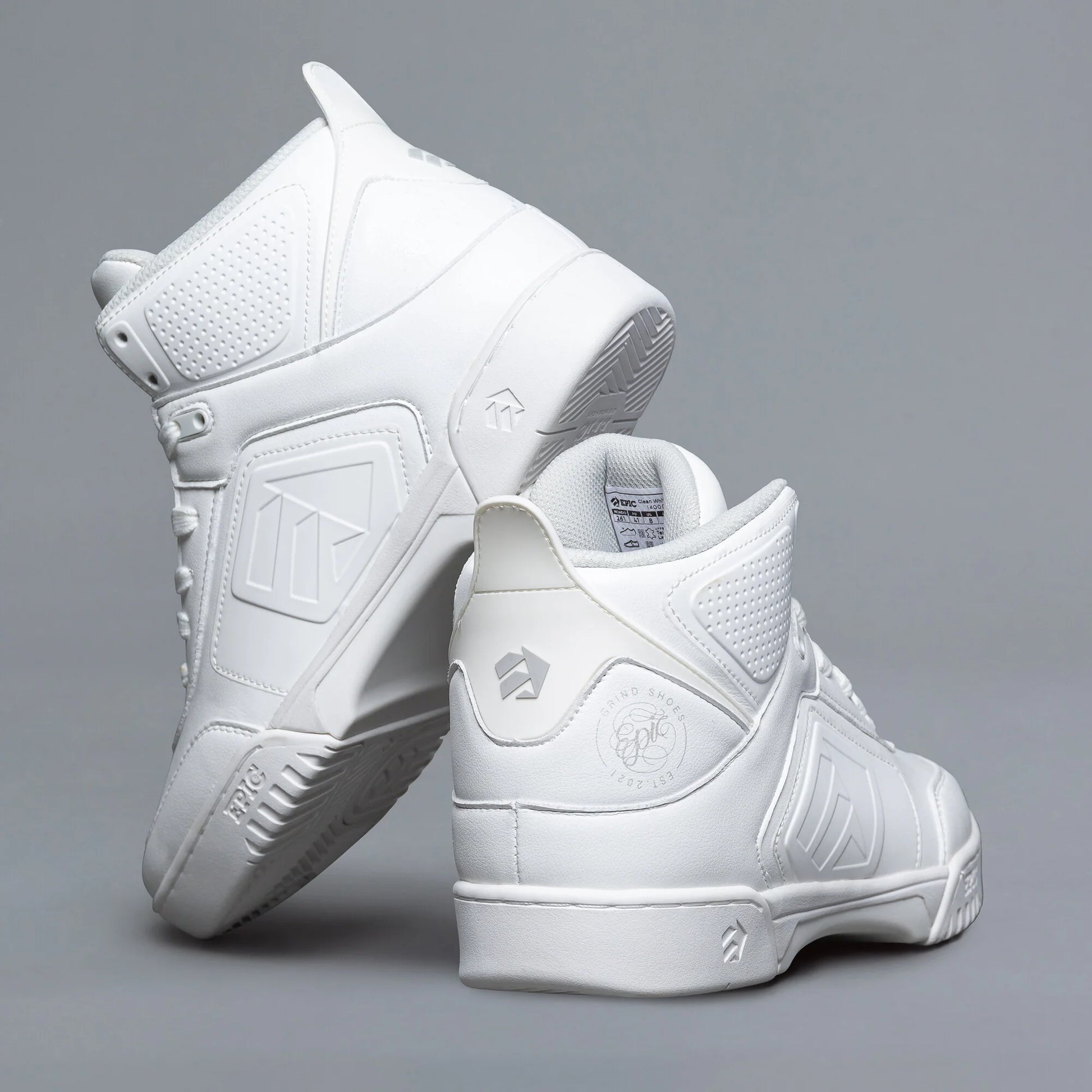 Epic Clean White Grindshoes are made for grinding or sliding rails, curbs and ledges. While performing tricks and jumps these unique sneakers guarantee a superb cool look!