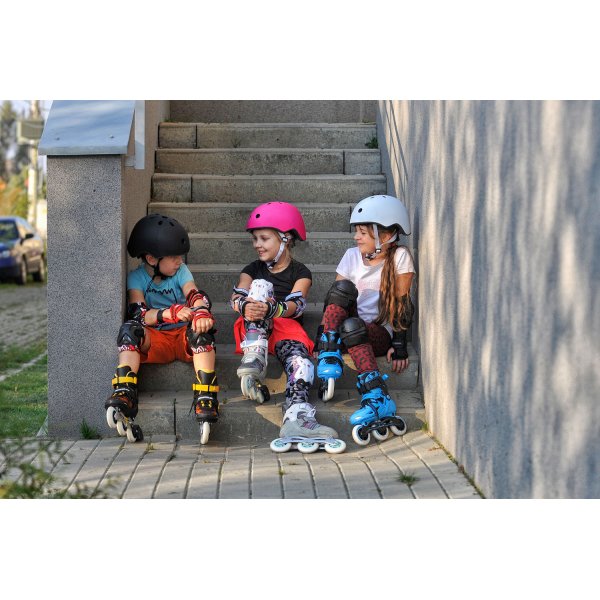 Powerslide Phuzion Universe Blue kids skates have a fresh, blue color combination on a rigid hardshell with three wheels. The Phuzion Universe skate allows kids to cruise the neighborhood with friends, play hockey or to start building technical skating skills. The compact setup with a center wheel that acts like a spinning coin to help kids to more easily maneuver their skates.