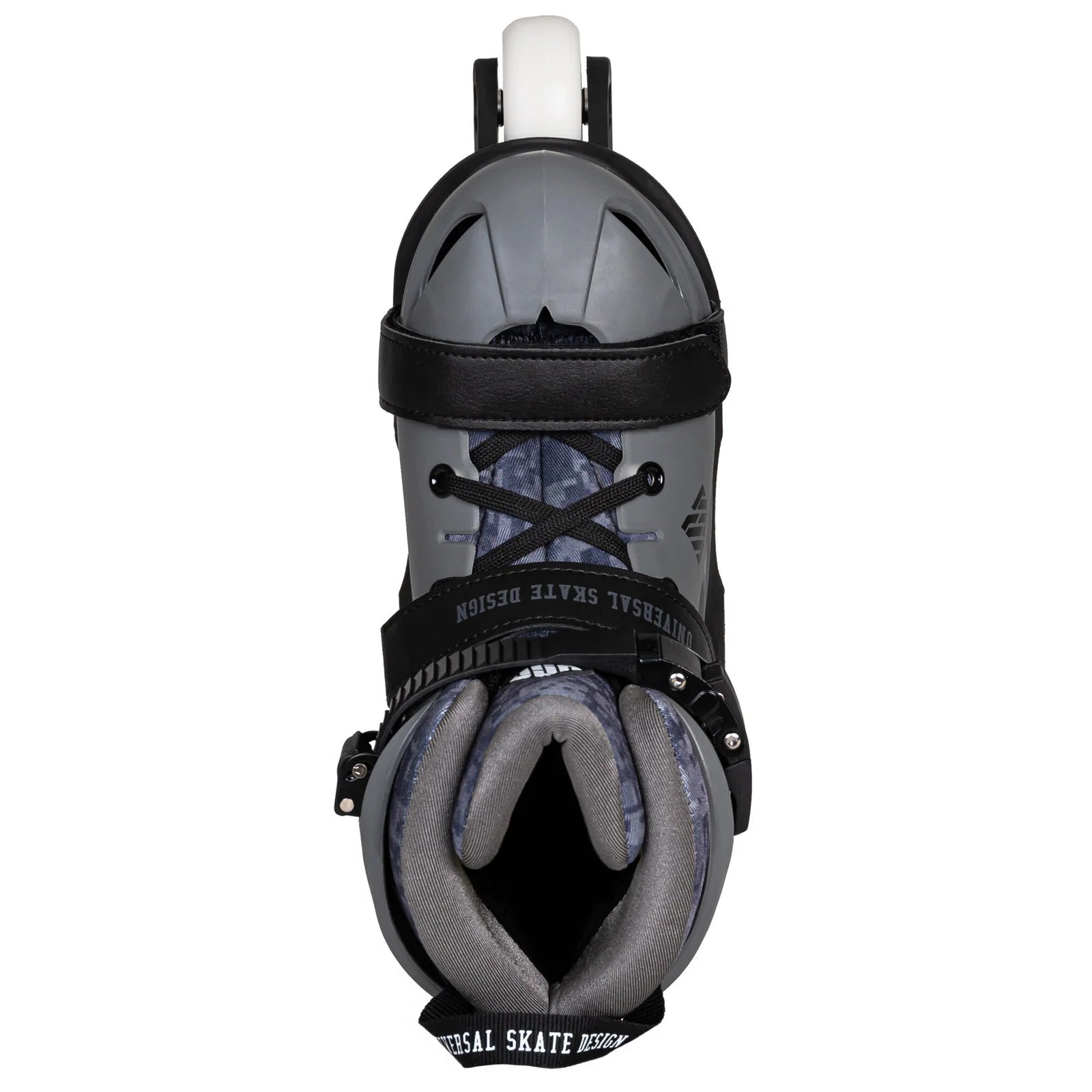 Meet the USD Glitch adj. Grey Black: a cool, feature-packed inline skate designed for kids' aggressive skating, offering speed, durability, and precision for aspiring young skaters.